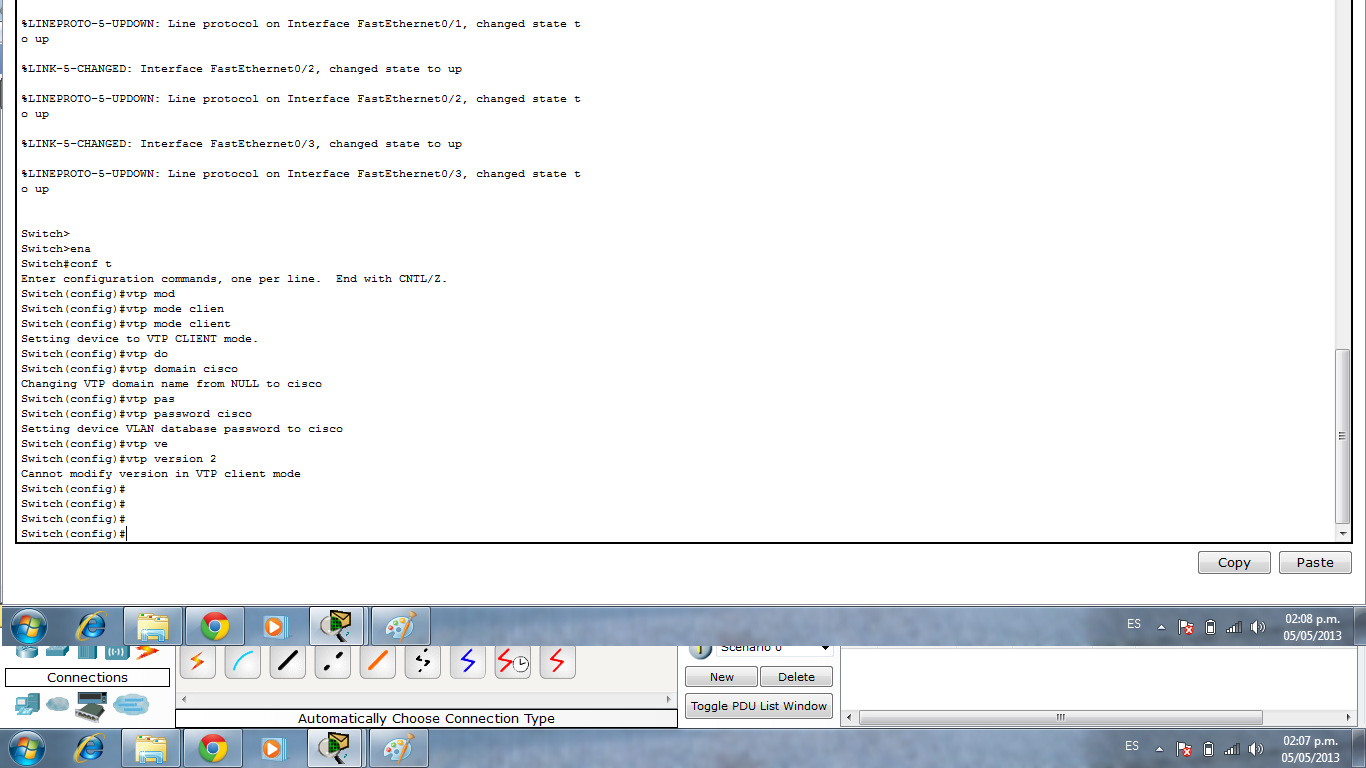 Comandos para configurar VTP modo client